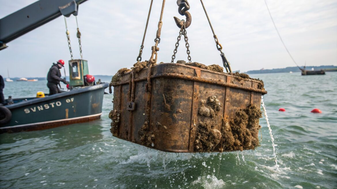 Cornwall, England – A routine fishing trip turned into a mystery when a local crew hauled a strange, barnacle-covered container from the seabed three miles off the coast of St. Ives.